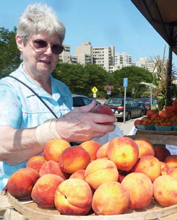 Beachmont’s Claire Morgan chooses a nice, ripe peach at the Revere Beach Farmer’s Market last Thursday. The Market continues in full swing all this month and October, with a majority of the prime harvest coming right now. The Market is open every Thursday from noon to 6 p.m.